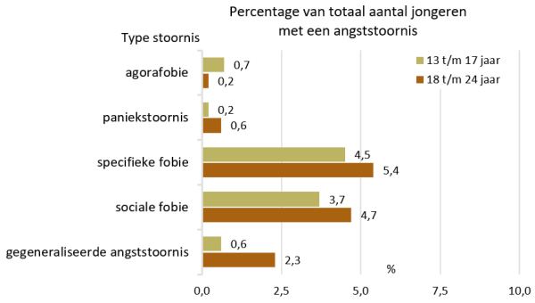 Uit het Nemesis-3 onderzoek blijkt dat 30 procent van de 18- tot 24-jarigen ooit in hun leven een angststoornis heeft gehad. Angststoornissen komen vaker voor bij jonge vrouwen dan jonge mannen (respectievelijk 37,6 procent en 23,1 procent). Circa 20 procent heeft in de 12 maanden voorafgaand aan het onderzoek te maken gehad met een angststoornis (ten Have e.a., 2022).